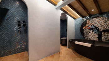 The bathroom has a unique layout, with a stone bathtub, modern shower, minibar, coffee & tea making facilities, full length mirror, anti-fog mirror and electronic bidet toilet.